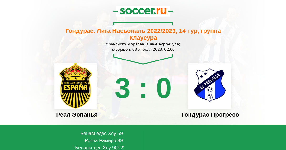 Протокол матча Реал Эспанья против Гондурас Прогресо
