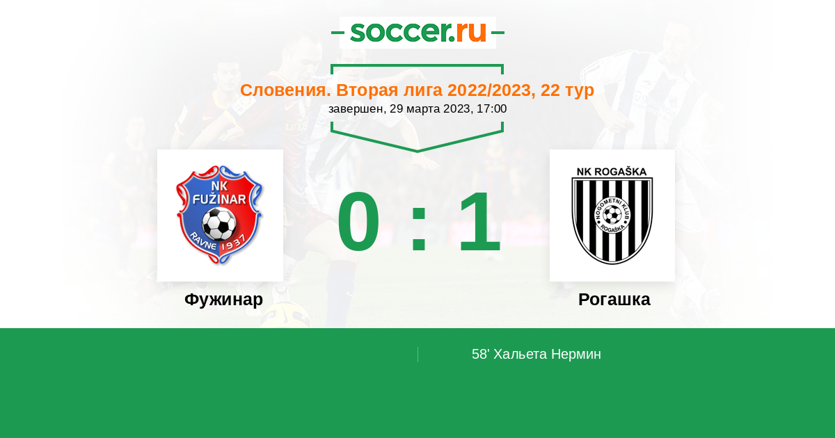 Протокол матча Фужинар против Рогашка