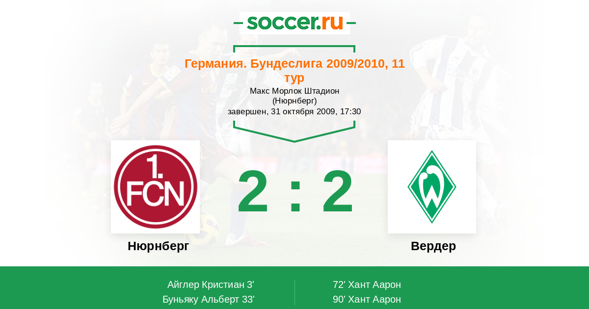 Протокол матча Нюрнберг против Вердер