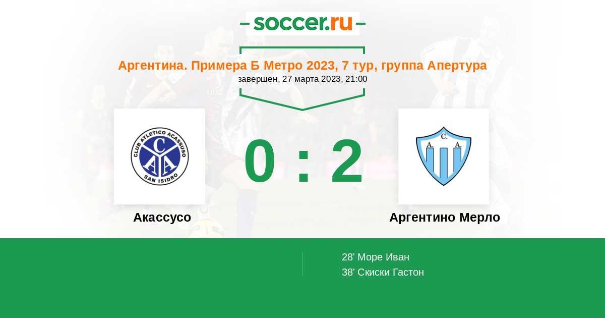 Протокол матча Акассусо против Аргентино Мерло
