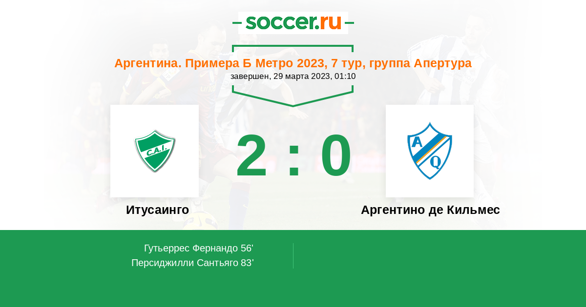 Протокол матча Итусаинго против Аргентино де Кильмес