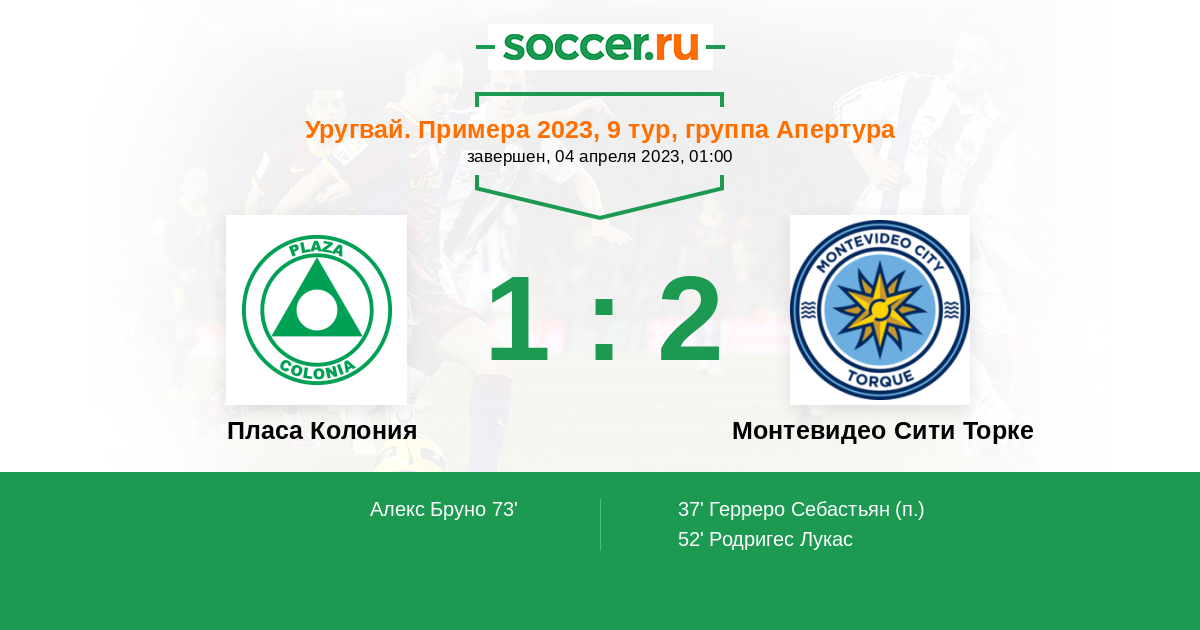 Протокол матча Пласа Колония против Монтевидео Сити Торке