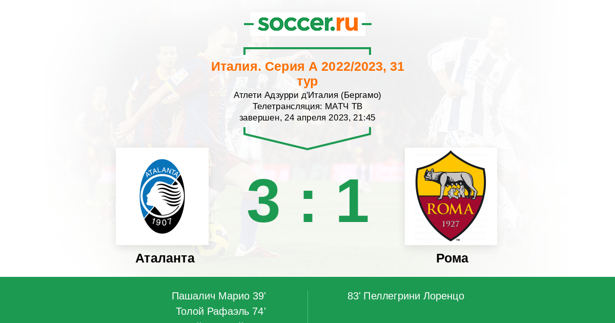Протокол матча Аталанта против Рома