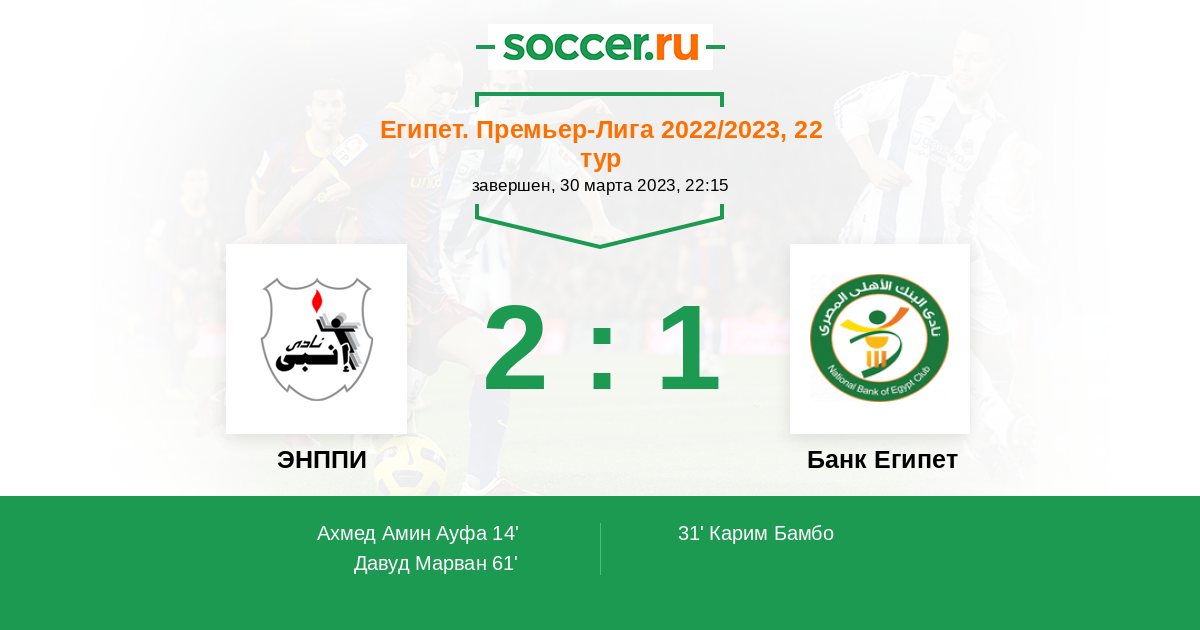 Протокол матча ЭНППИ против Банк Египет