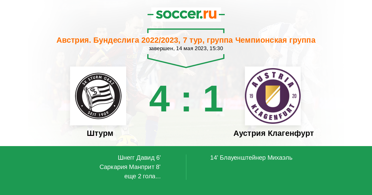 Протокол матча Штурм против Аустрия Клагенфурт