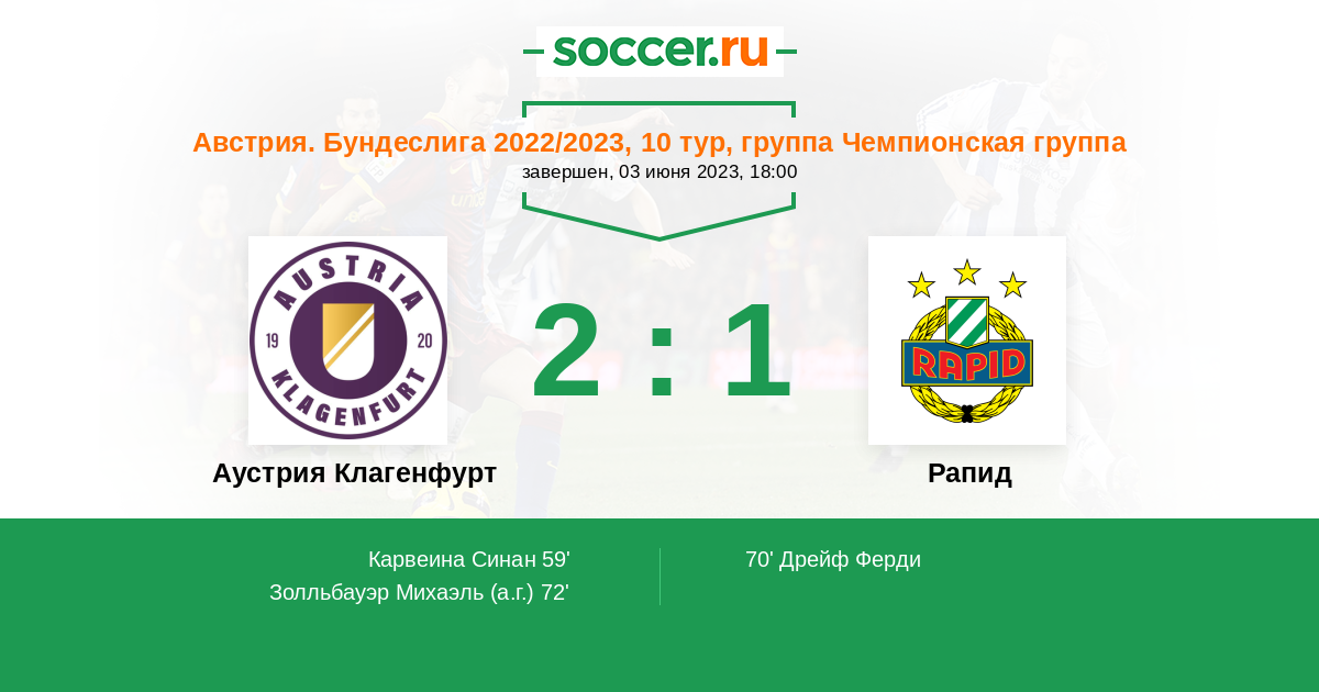 Протокол матча Аустрия Клагенфурт против Рапид