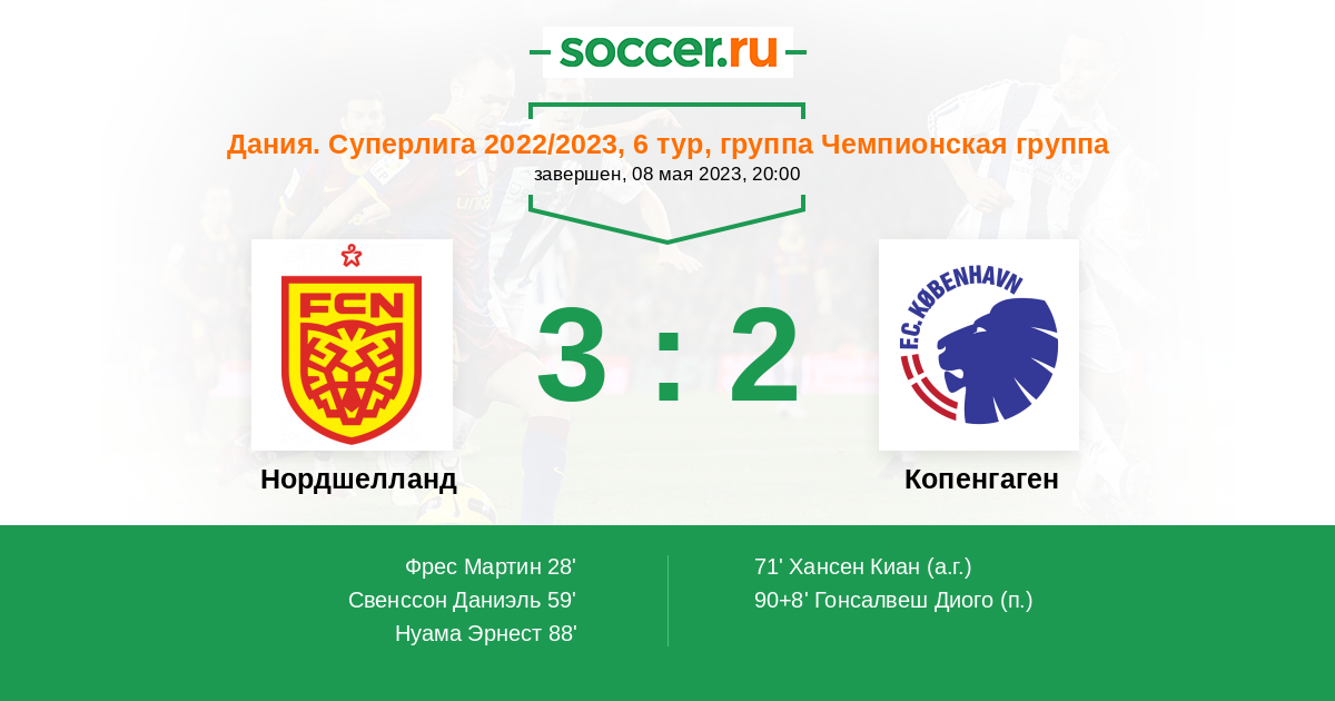 Протокол матча Нордшелланд против Копенгаген