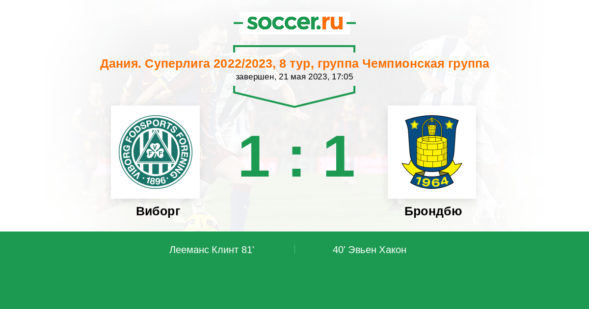 Протокол матча Виборг против Брондбю