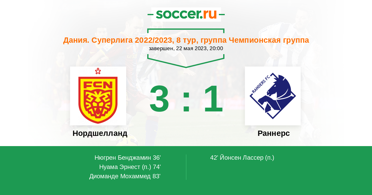 36' (1:0) Нюгрен Бенджамин (9) (Бидструп Мадс (18))