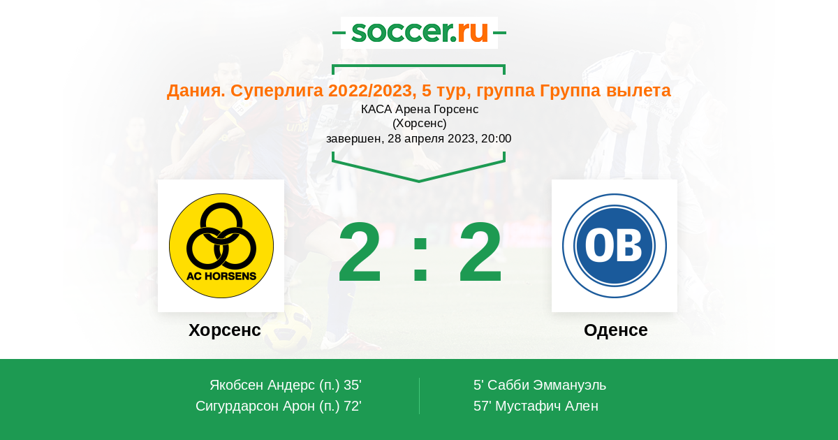 Протокол матча Хорсенс против Оденсе