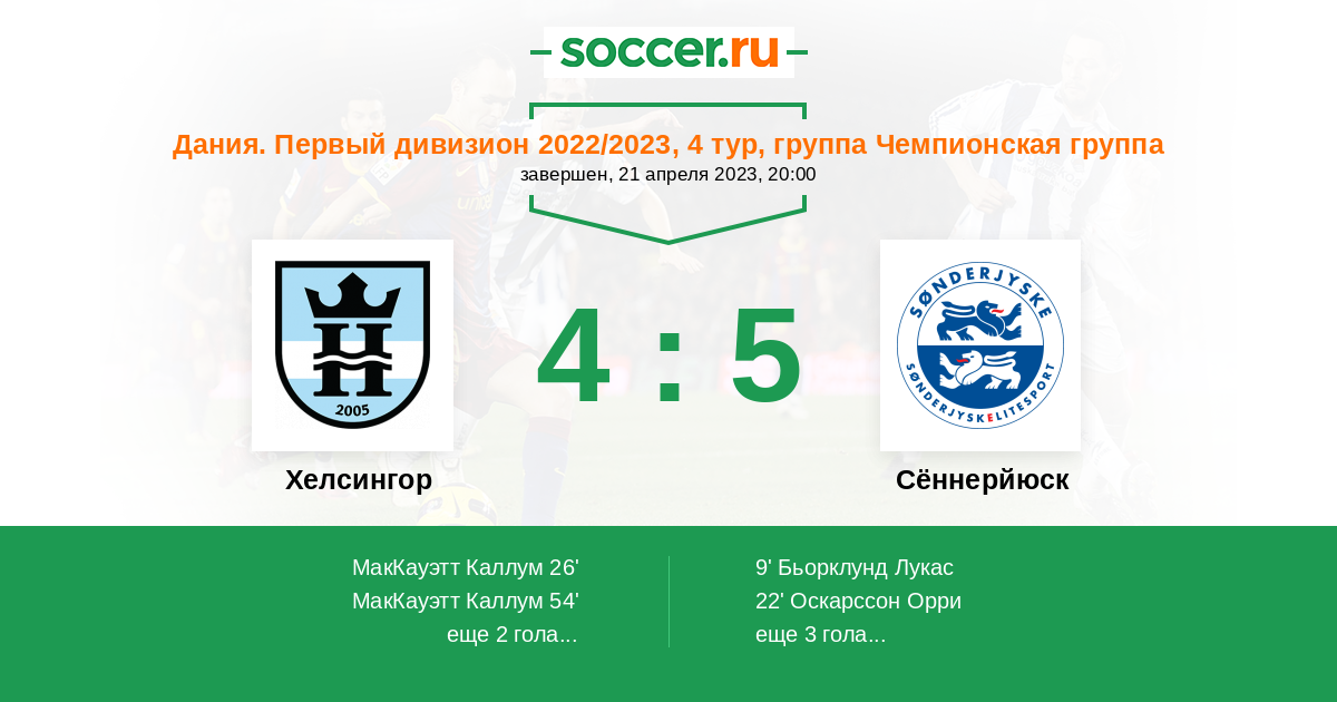 Протокол матча Хелсингор против Сённерйюск