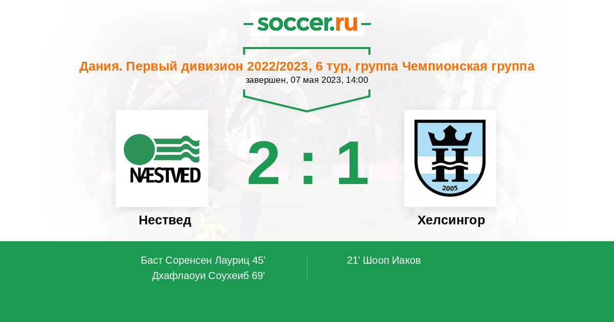69' (2:1) Дхафлаоуи Соухеиб (10) (Молвадгаард Маркус (81))