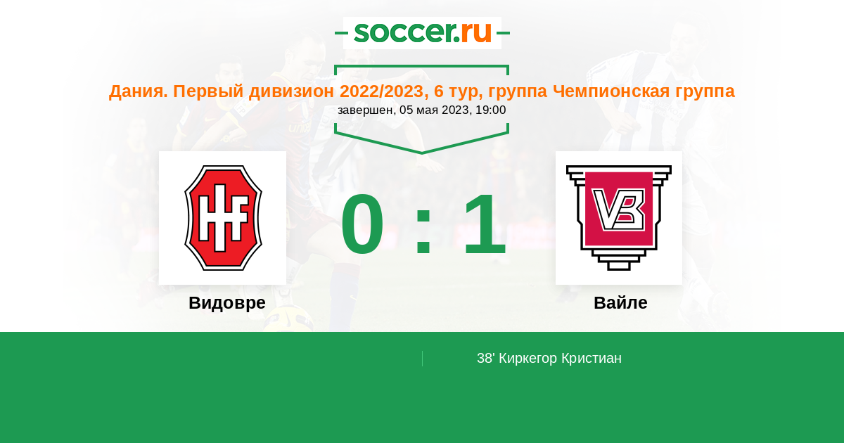 Протокол матча Видовре против Вайле