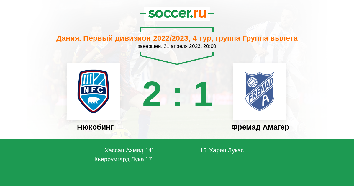Протокол матча Нюкобинг против Фремад Амагер