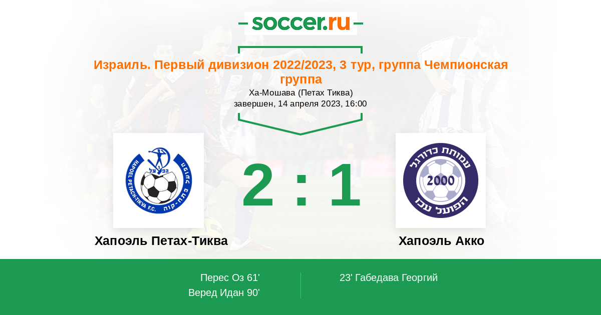 Протокол матча Хапоэль Петах-Тиква против Хапоэль Акко