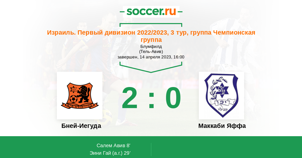 Протокол матча Бней-Иегуда против Маккаби Яффа