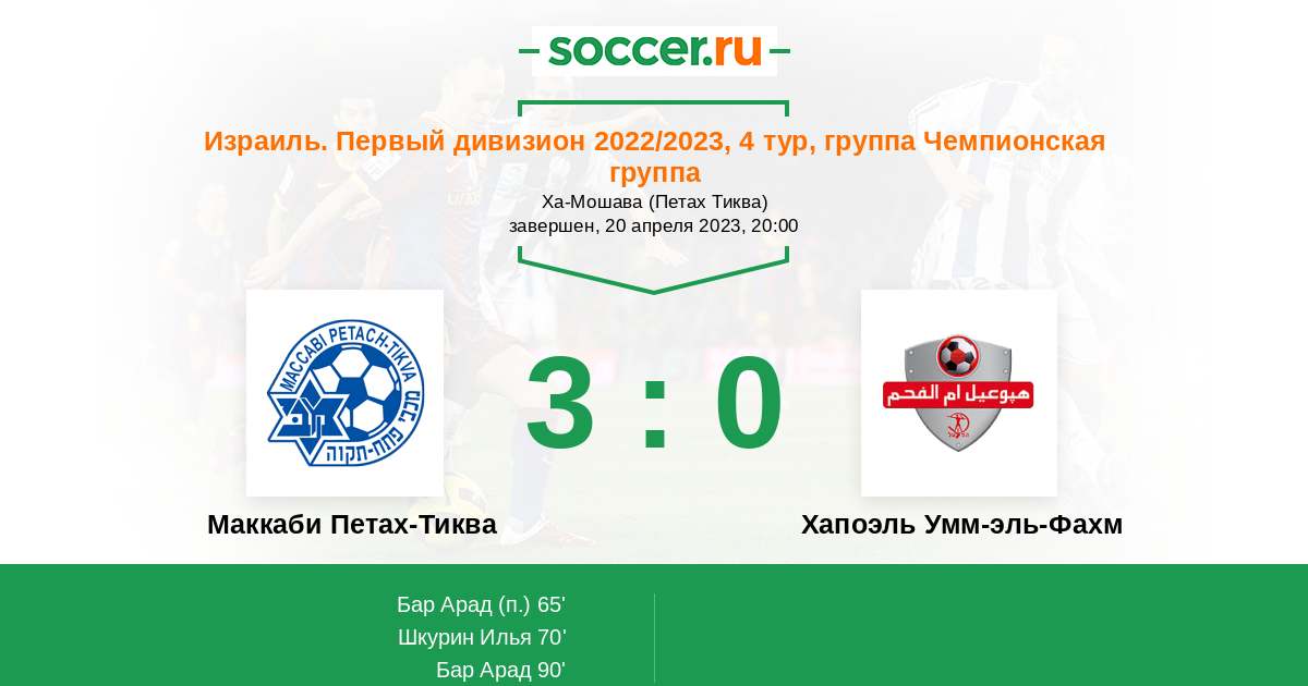 Протокол матча Маккаби Петах-Тиква против Хапоэль Умм-эль-Фахм