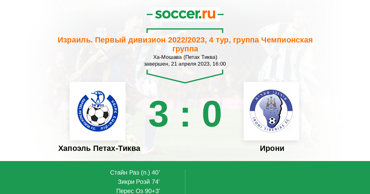 Протокол матча Хапоэль Петах-Тиква против Ирони
