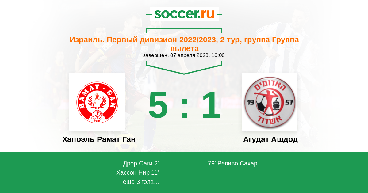 Протокол матча Хапоэль Рамат Ган против Агудат Ашдод