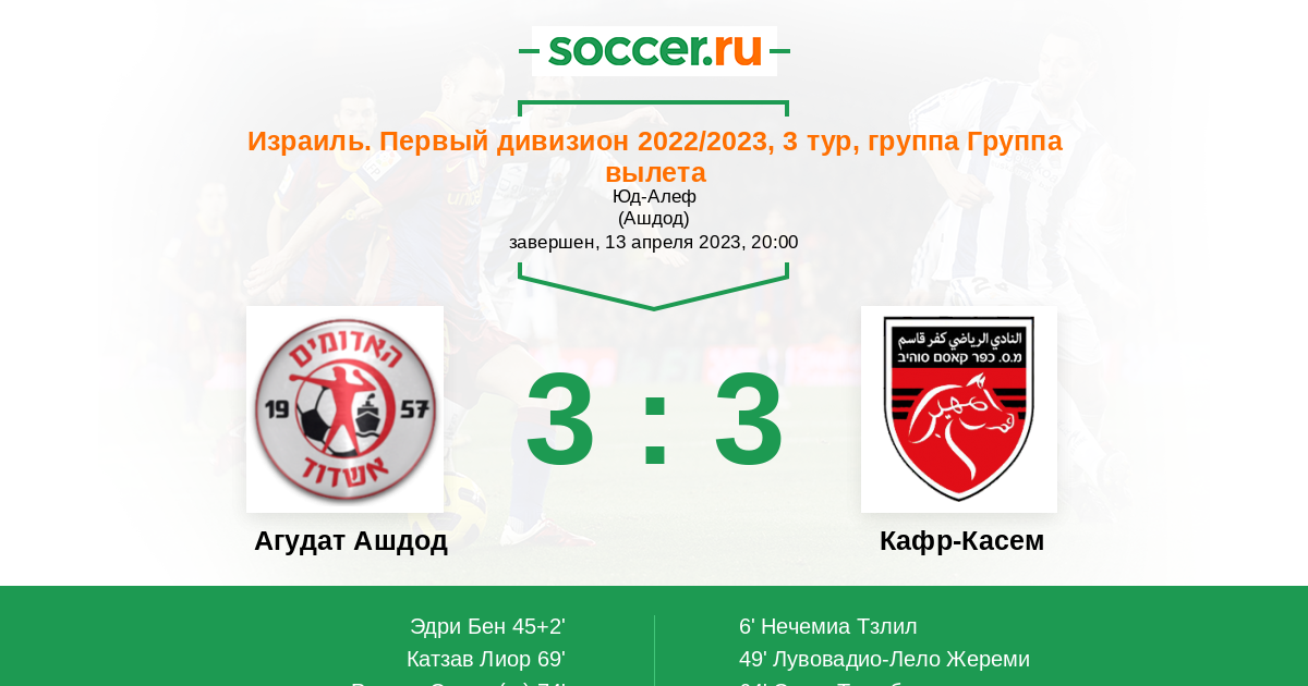 Протокол матча Агудат Ашдод против Кафр-Касем
