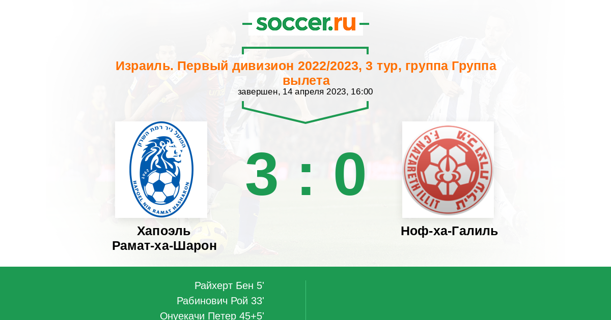 Протокол матча Хапоэль Рамат-ха-Шарон против Ноф-ха-Галиль