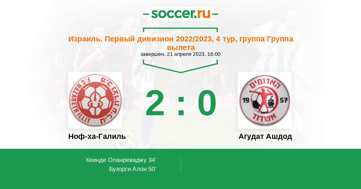 Протокол матча Ноф-ха-Галиль против Агудат Ашдод