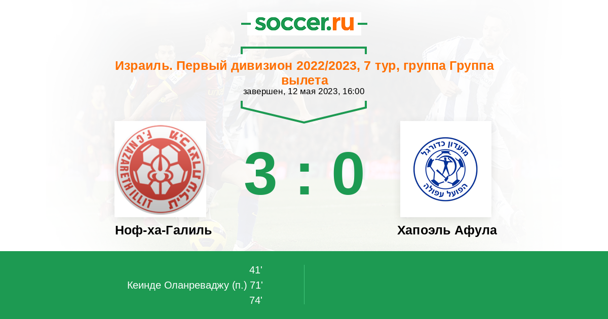 Протокол матча Ноф-ха-Галиль против Хапоэль Афула
