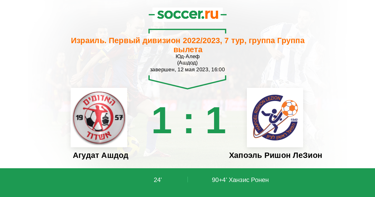Протокол матча Агудат Ашдод против Хапоэль Ришон ЛеЗион