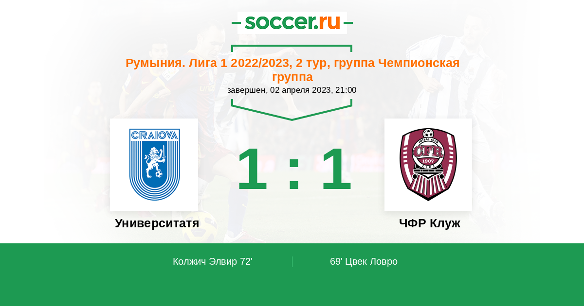 Протокол матча Университатя Крайова против ЧФР Клуж