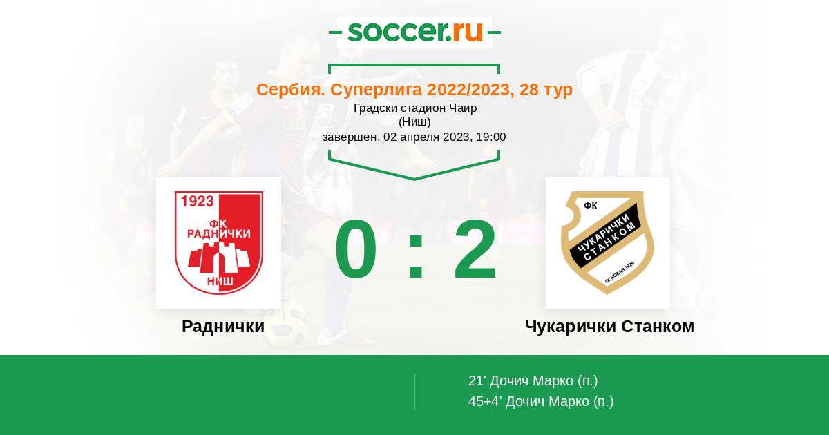45+4’ 0:2(П) Дочич Марко