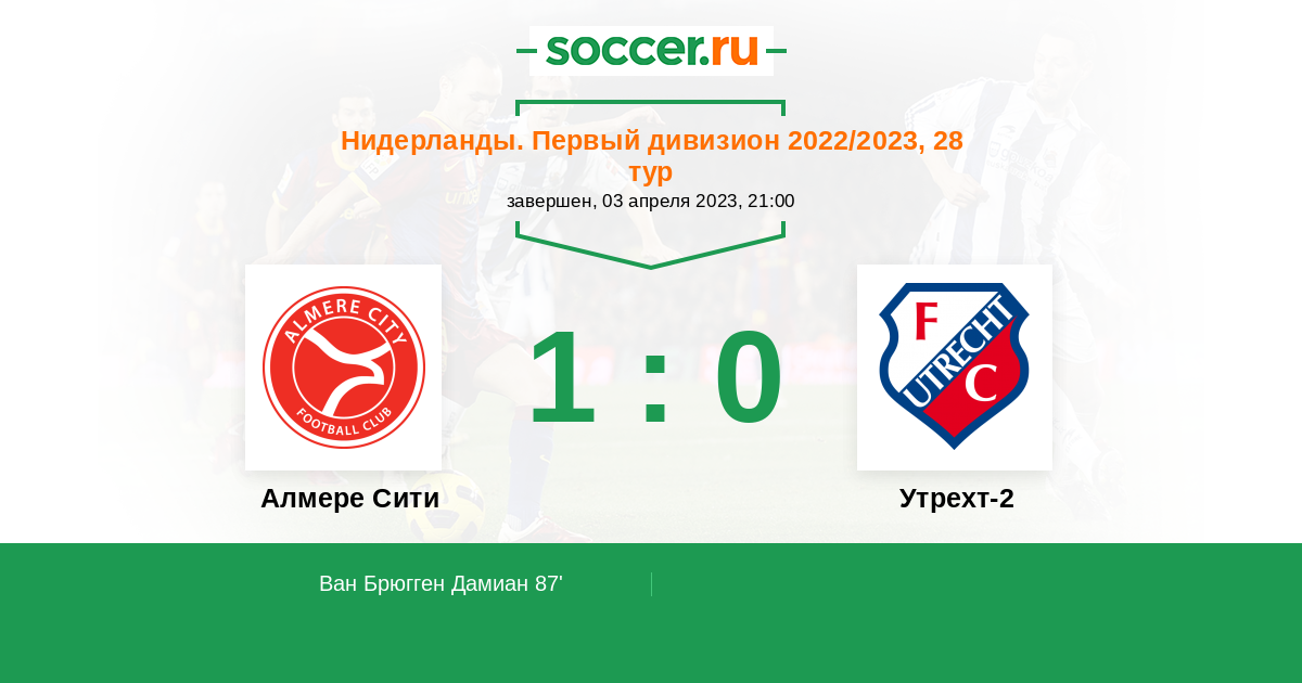 Протокол матча Алмере Сити против Утрехт-2