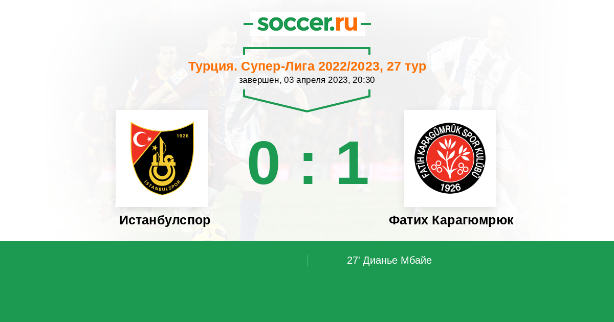 Протокол матча Истанбулспор против Фатих Карагюмрюк