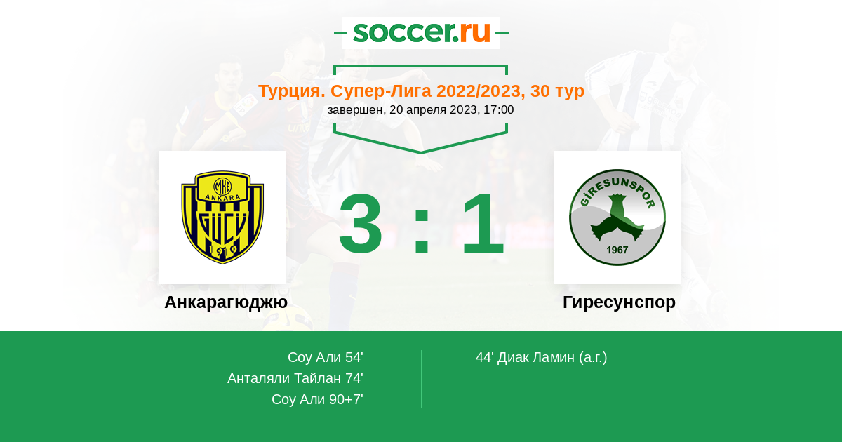 Протокол матча Анкарагюджю против Гиресунспор
