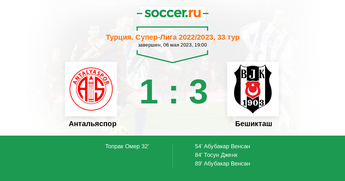 Протокол матча Антальяспор против Бешикташ