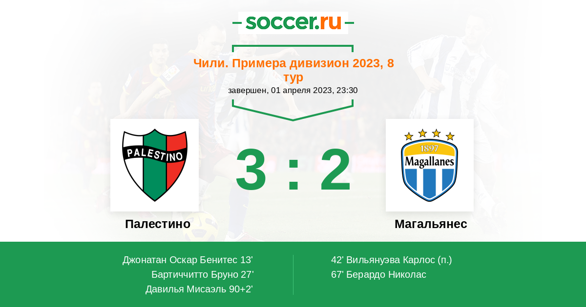 Протокол матча Палестино против Магальянес