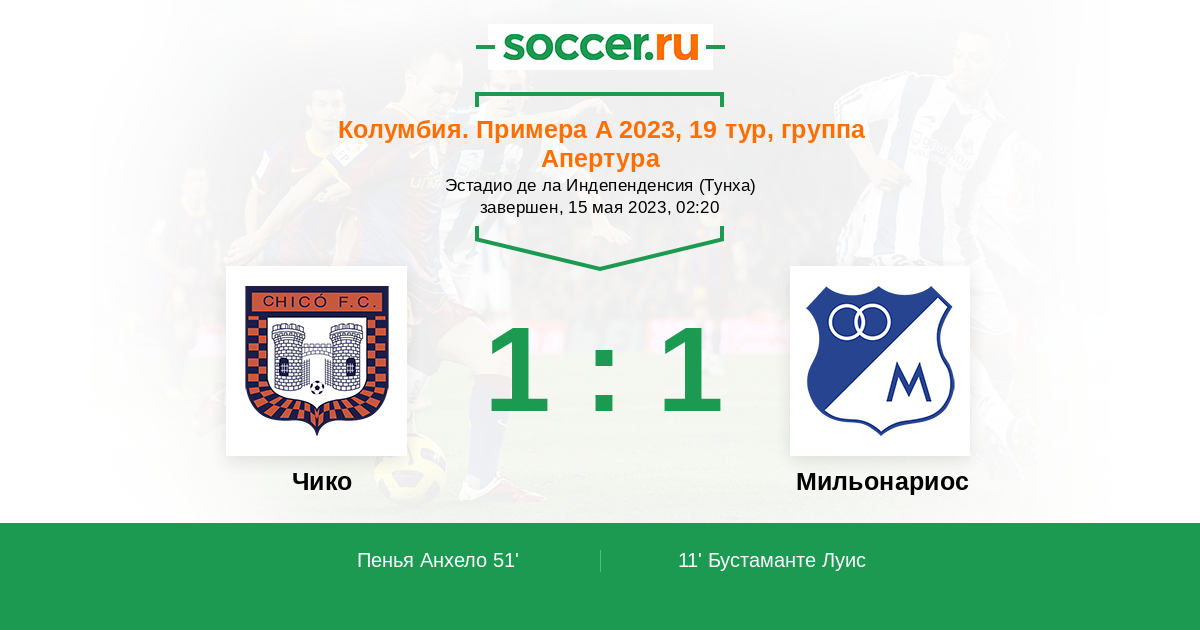 Протокол матча Чико против Мильонариос