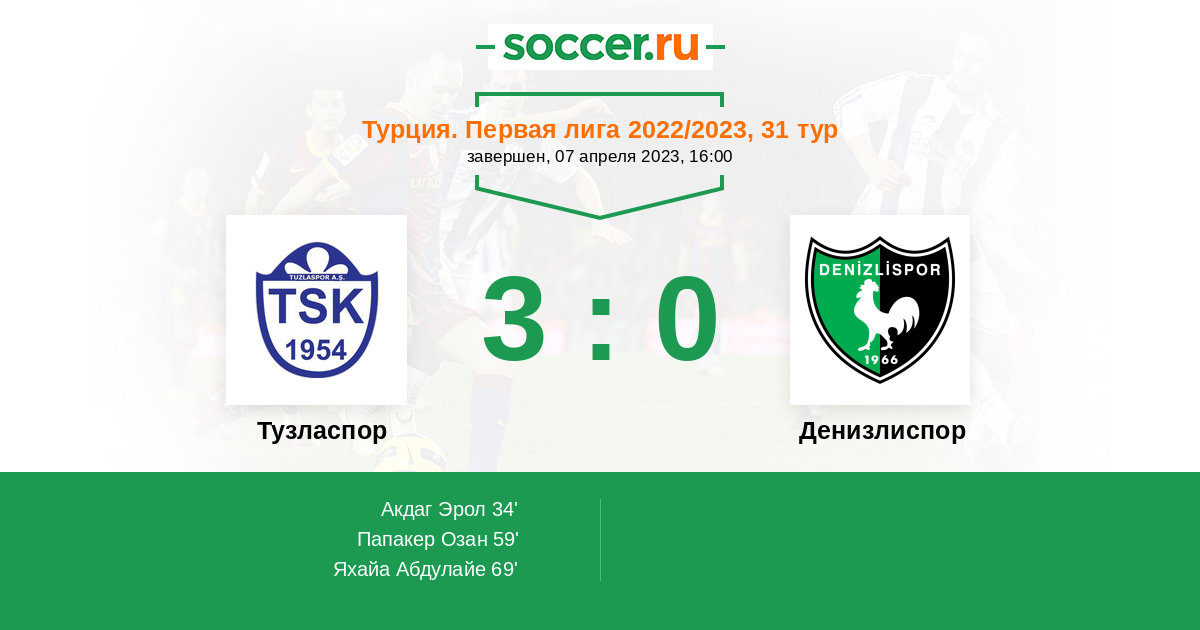 Протокол матча Тузласпор против Денизлиспор