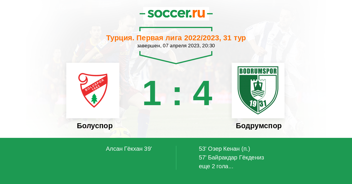 65' (1:3) Байракдар Гёкдениз (41) (Эргюн Юзеир (23))