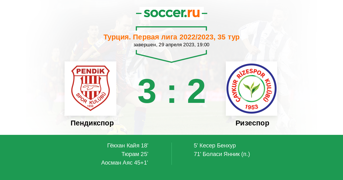 25' (2:1) Тюрам (34) (Кылыч Хасан (28))
