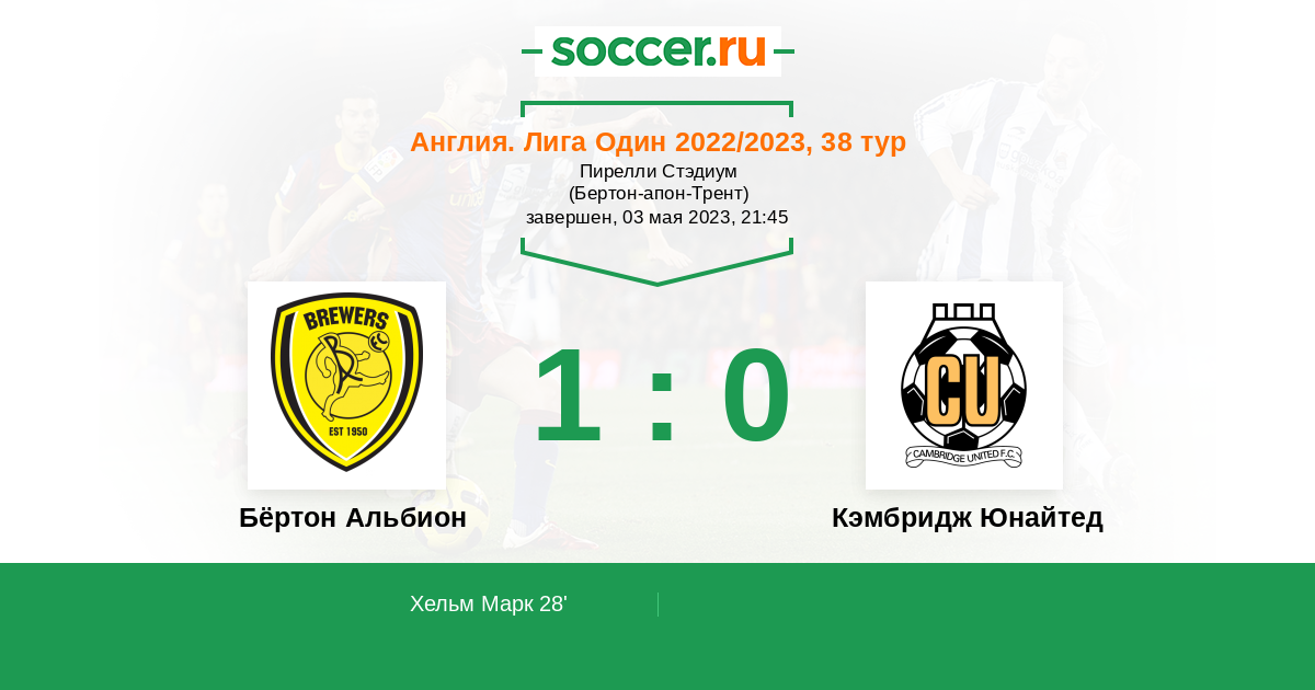 Протокол матча Бёртон Альбион против Кэмбридж Юнайтед