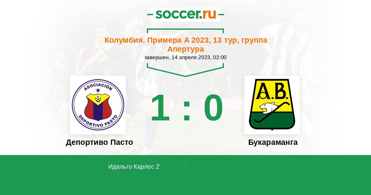Протокол матча Депортиво Пасто против Букараманга