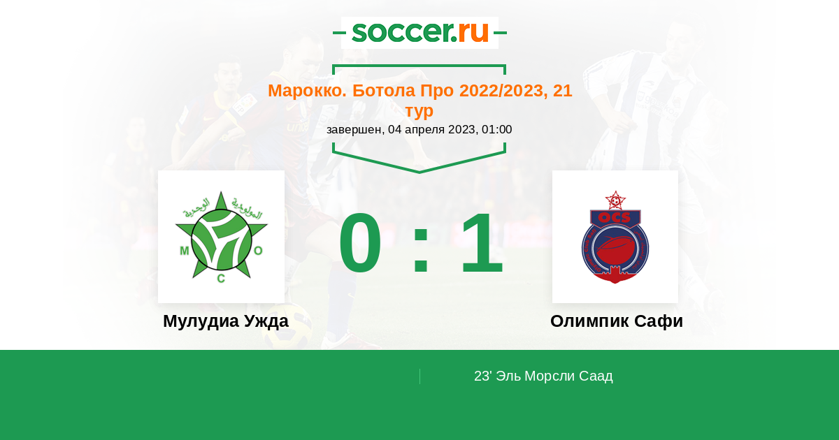 Протокол матча Мулудиа Ужда против Олимпик Сафи