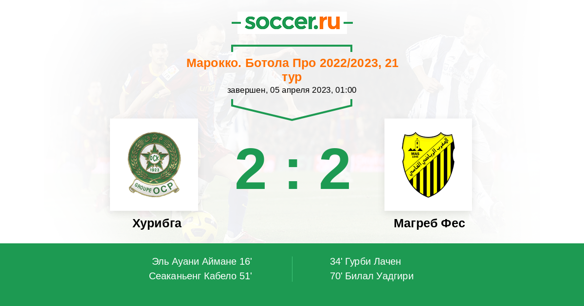 Протокол матча Хурибга против Магреб Фес