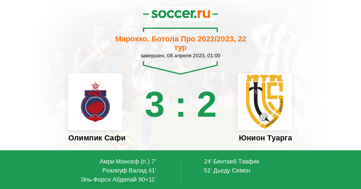 Протокол матча Олимпик Сафи против Юнион Туарга