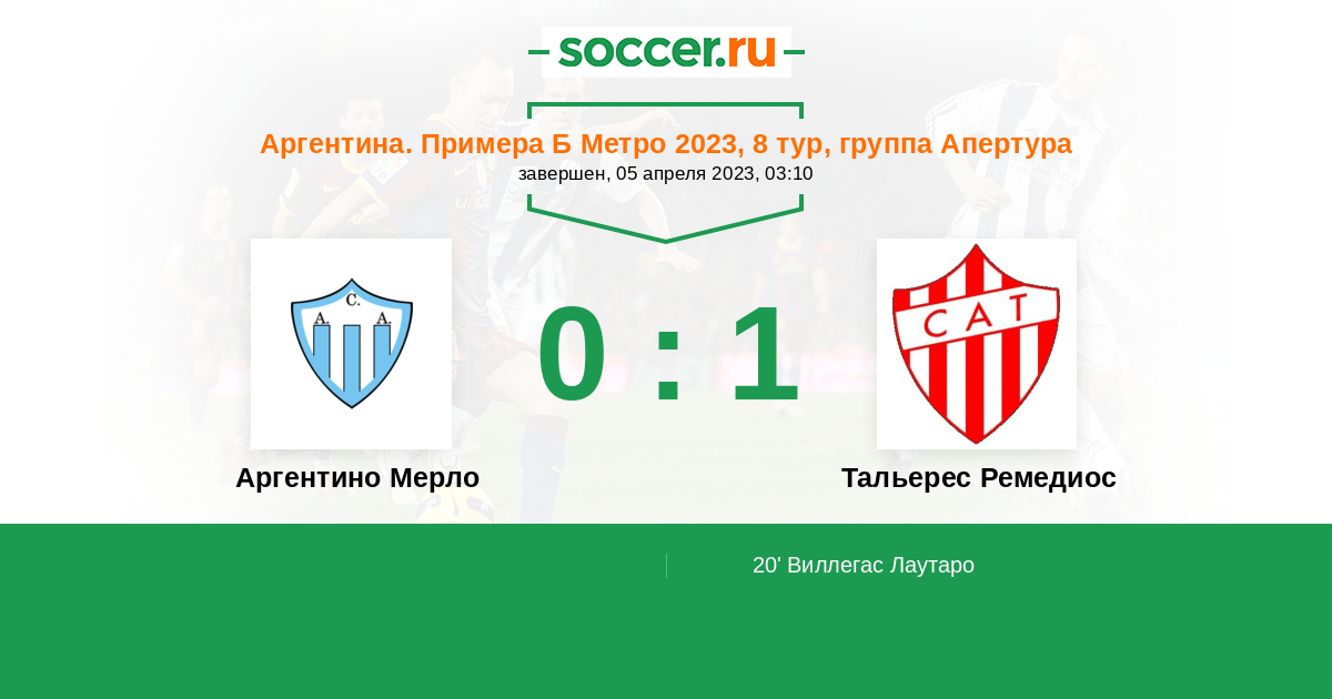 Протокол матча Аргентино Мерло против Тальерес Ремедиос
