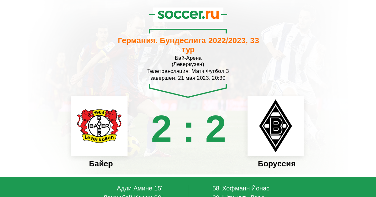 Протокол матча Байер против Боруссия