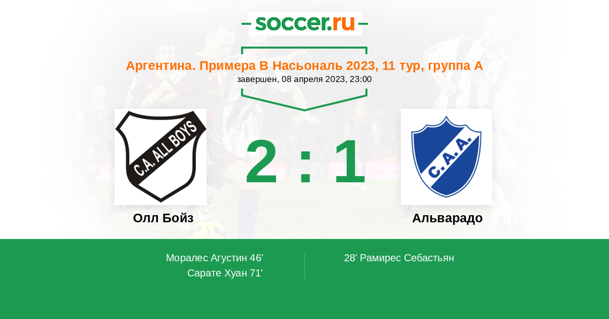 Протокол матча Олл Бойз против Альварадо