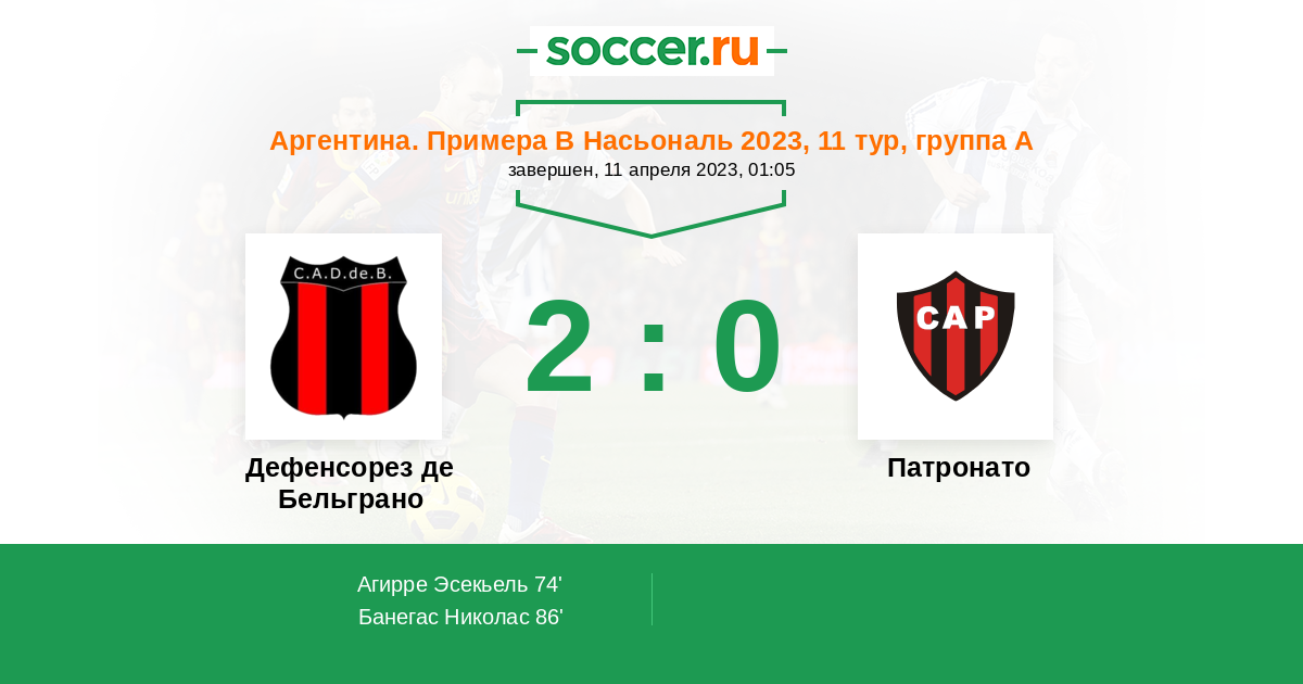 Протокол матча Дефенсорез де Бельграно против Патронато
