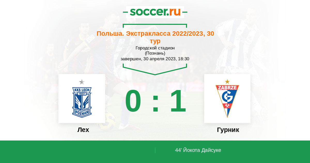 Протокол матча Лех против Гурник