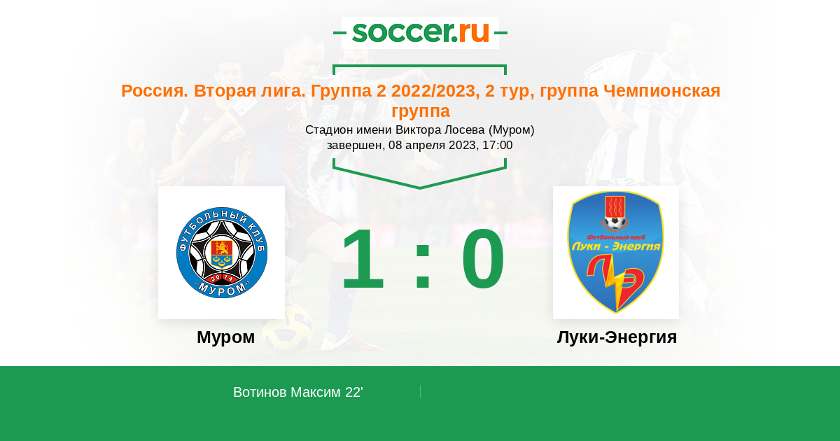 Протокол матча Муром против Луки-Энергия